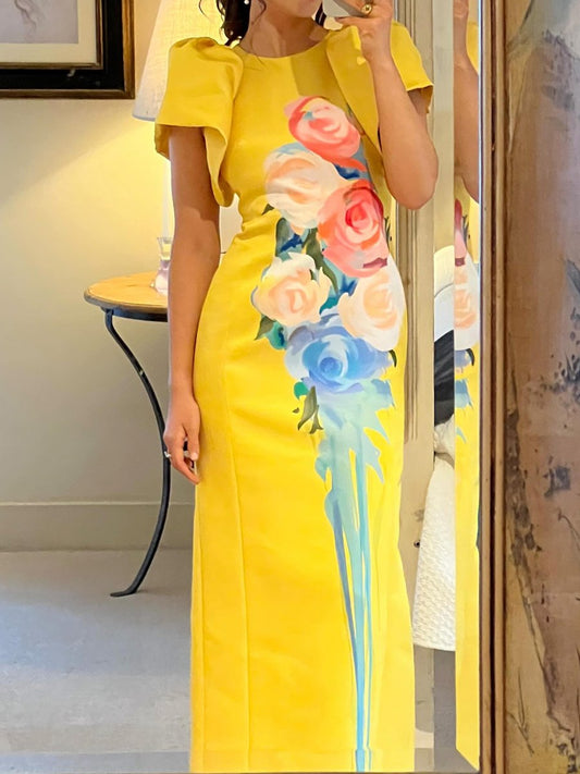 Placement Print Puff Sleeve Party Dress