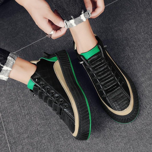 2023 Men's Genuine Leather Thick Sole Crocodile Pattern Casual Shoes